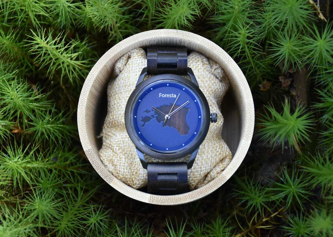 - Käekella puidust detailid on valmistatud tumedast sandlipuidust.