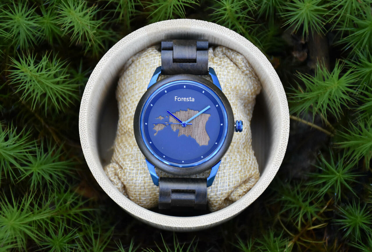 - Käekella puidust detailid on valmistatud tumedast sandlipuidust.