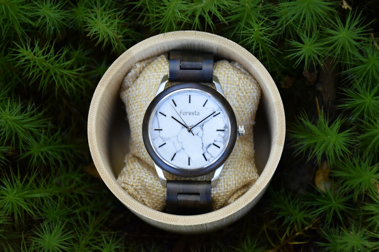 - Käekella puidust detailid on valmistatud tumedast sandlipuidust